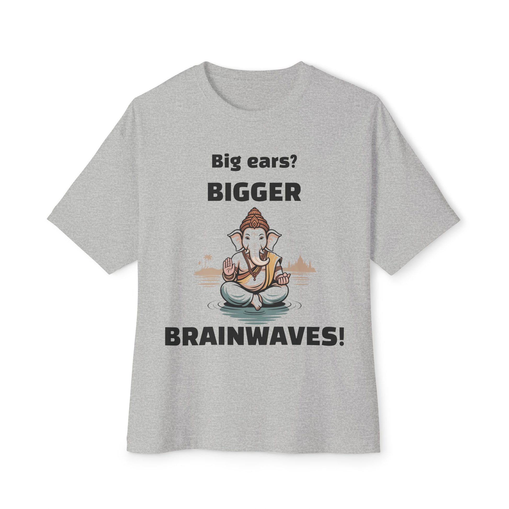 A relaxed fit t-shirt with a picture of Ganesh, the Hindu god of wisdom and intellect, in lighter colors. The design aims for a funnier and more modern approach to remind oneself of the ability to overcome challenges. Perfect for those looking for a unique and inspirational tee to add to their wardrobe, suitable for casual wear or special occasions.